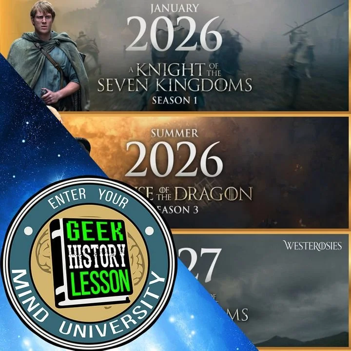 Westeros is once again at the forefront of television audience's minds! Dunk and Egg have stolen our hearts in A KNIGHT OF THE SEVEN KINGDOMS. Rhaenyra vs. Alicent returns to our screens this summer! How can your possibly keep it all straight? Maesters Ashley and Jason take the tomes down from the Citadel to unveil George R.R. Martin's history of A Song of Ice and Fire evolution into the Game of Thrones juggernaut it is tonight with these episodes from the archives for this MEGA EPISODE: