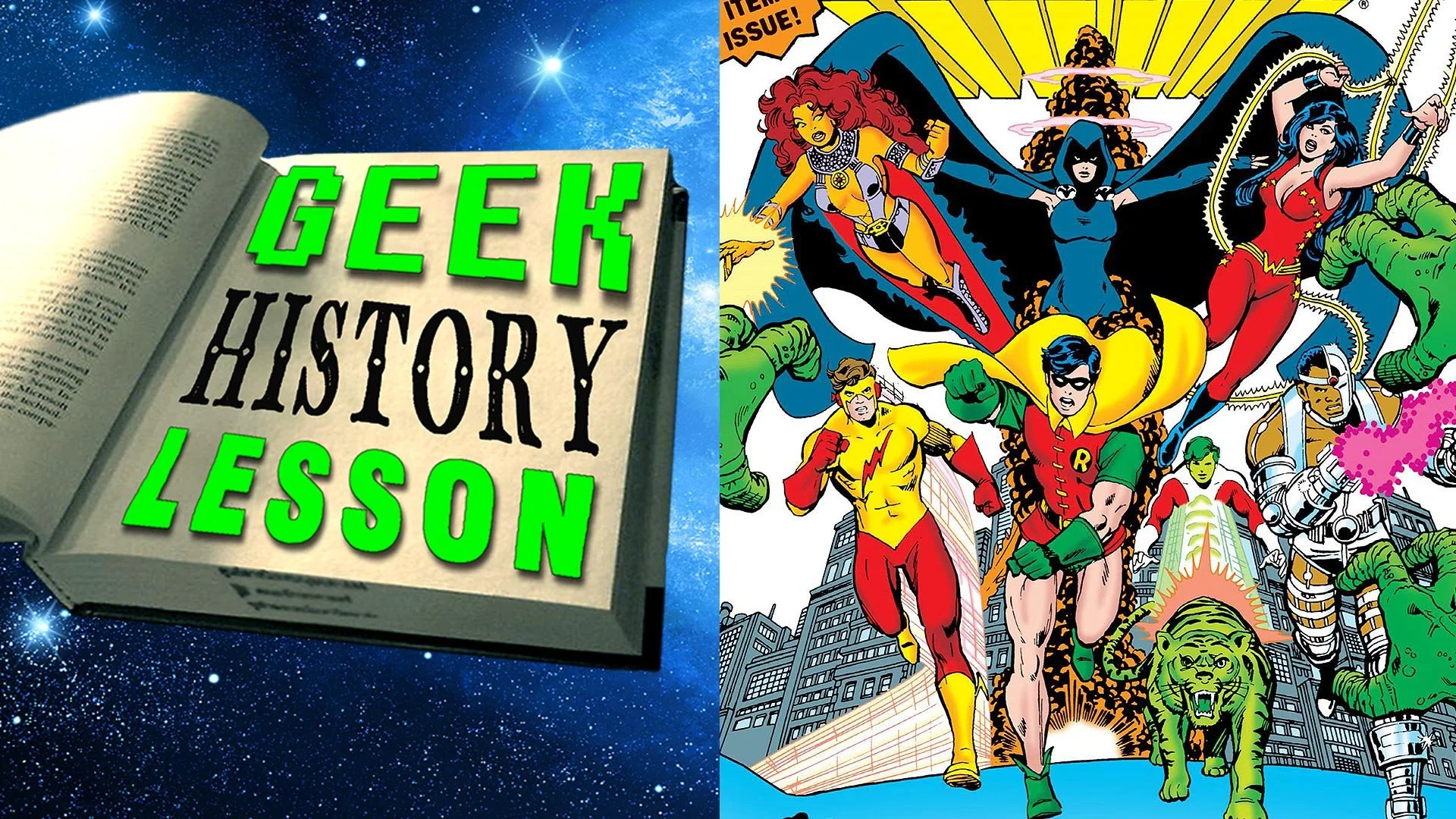 Get groovy with the teeny bopper superteam of the DC Universe as Geek History Lesson embarks on a time warp through the Silver Age of the Teen Titans —spanning from their introduction in 1964 to the beginning of The New Teen Titans era of 1979. This era introduced the beloved legacy characters of Robin, Wonder Girl, Kid Fash, Aqualad, and Speedy to a team intended to reach a new, younger generation of readers by using slang and pop culture references for the first time in DC Comics history. This period set the stage for one of the most beloved teams, team ups, and storytelling styles we see echoed today in tv, movies, and comics. Time to listen to the Teen Titans' Silver Age!